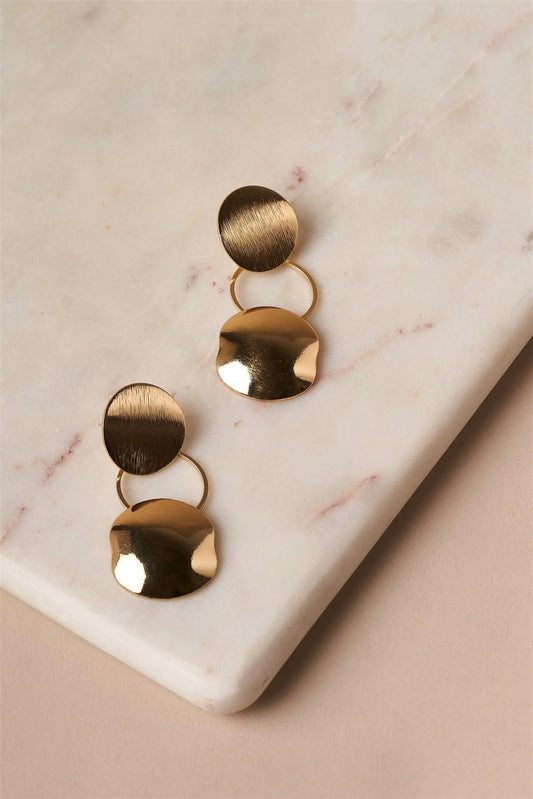Gold Brushed Effect Circle Disc Dangle Drop Earrings /1 Pair