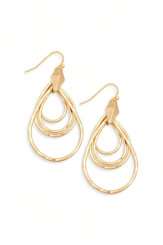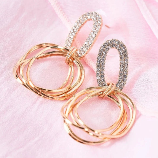 Gold Rhinestone Linked Multiple Hoop Drop Earrings