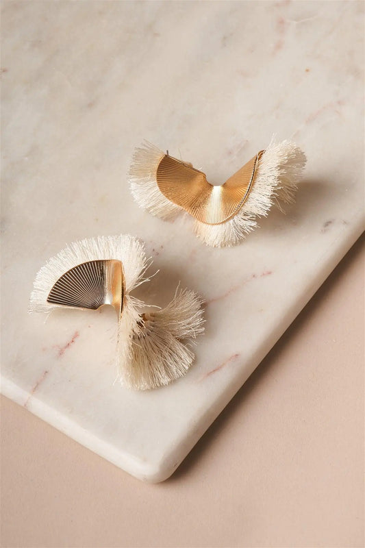Gold Ivory Retro Chic Twisted Statement Earrings /1 Pair